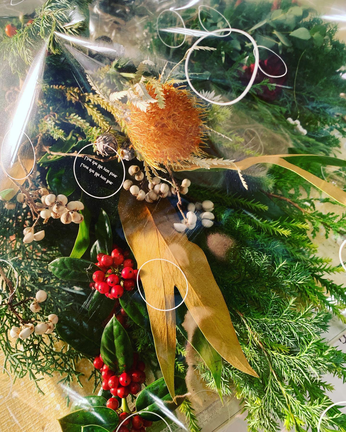 12月のお休みです。 •6日 月曜日 •13日 月曜日 •20日 月曜日 •24日 金曜日 ※29日から年末のお休みをいただきます。 クリスマススワッグ作りに初トライしてみました〜
